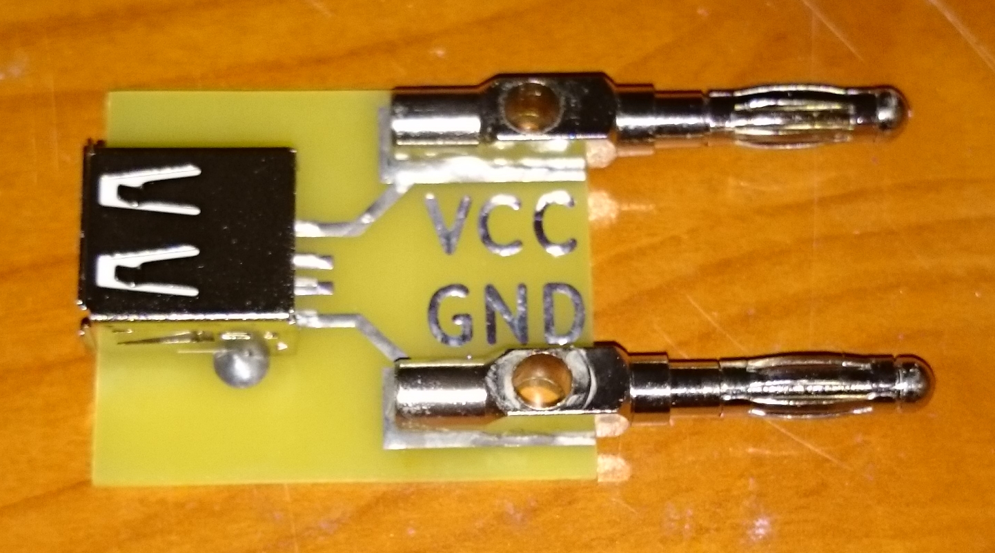 I've a lab supply, but it has no USB out. As I didn't wanted to cut any USB cables, I designed and built this small "tool":